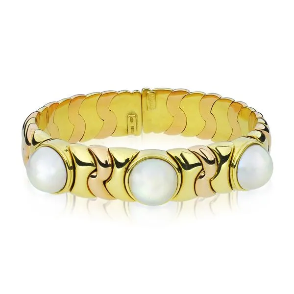 18K Yellow and Rose Gold Mabe Pearl Flex Bangle Image 2 Purple Creek Holly Springs, NC