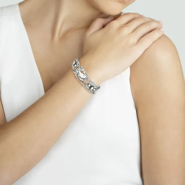 Coro Craft Vintage 7 1/2" Sterling Silver Norseland Bracelet with Safety Chain