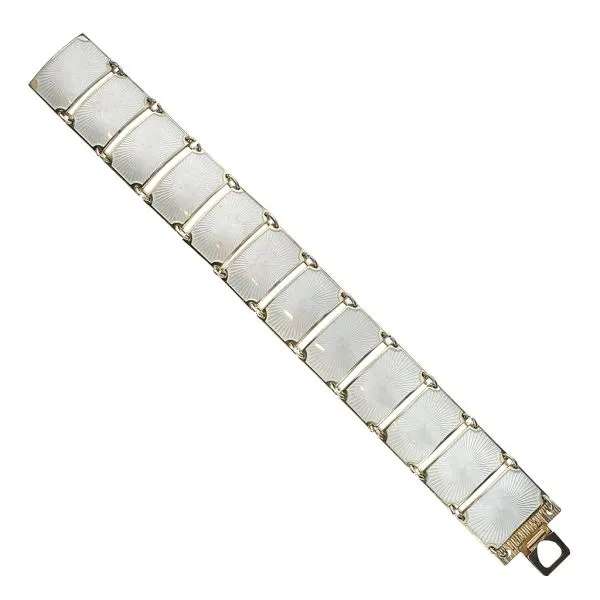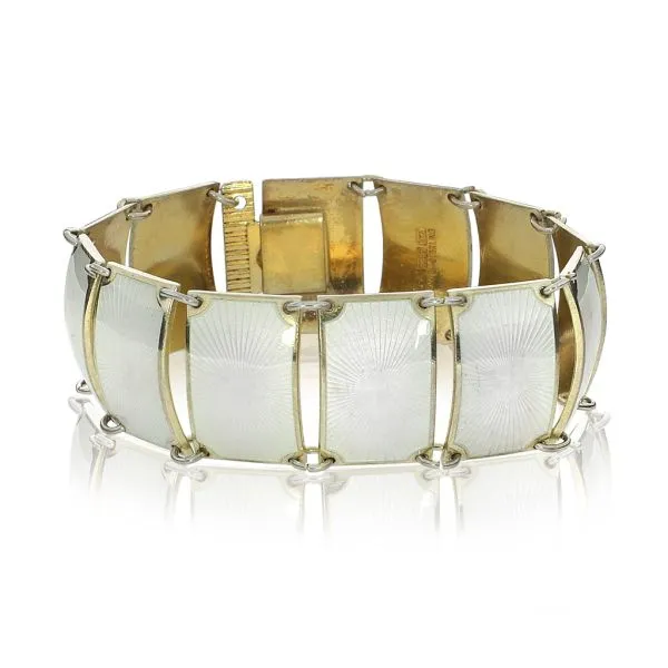 David Andersen Vintage Norwegian 7" Sterling White Pearl Guilloche Enamel Bracelet