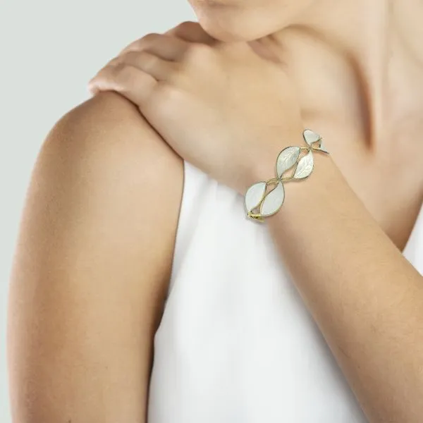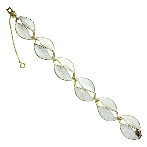 David Andersen Vintage Sterling Vermeil 1950's Guilloche White Enamel Leaf Bracelet