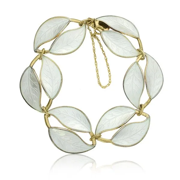 David Andersen Vintage Sterling Vermeil 1950's Guilloche White Enamel Leaf Bracelet Purple Creek Holly Springs, NC