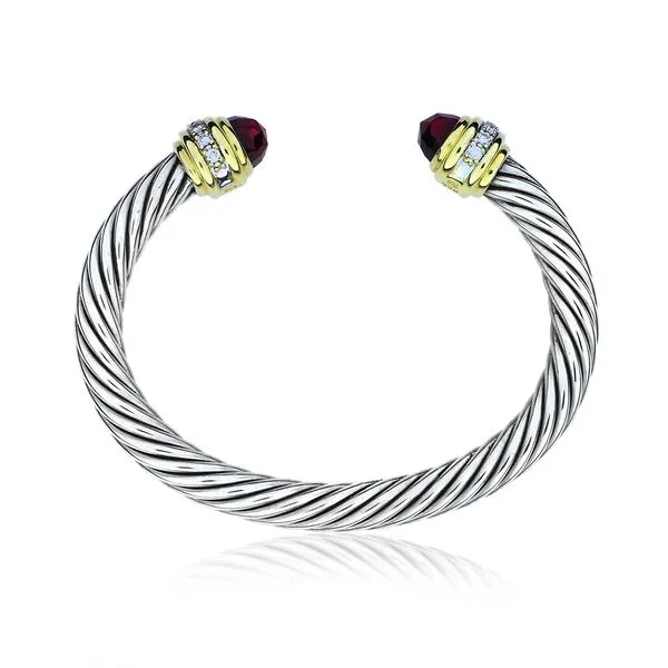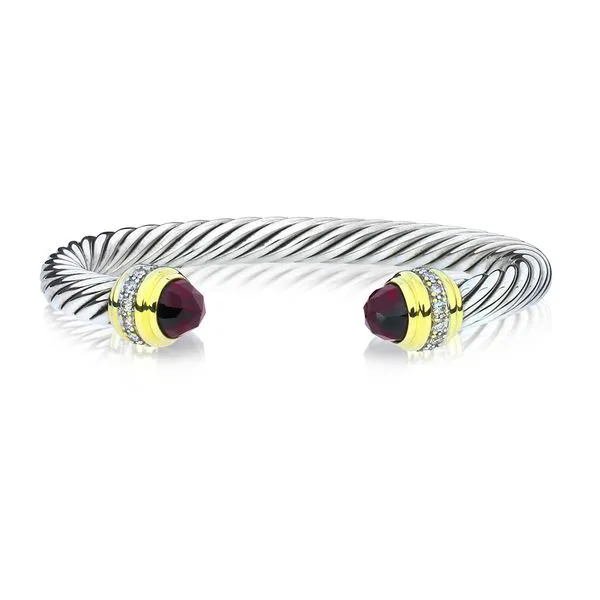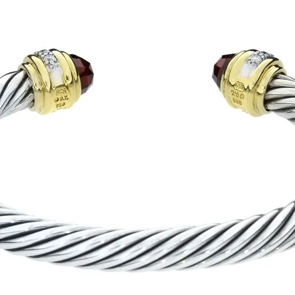 David Yurman 18K Yellow Gold and Sterling Garnet & Diamond Cable Classics Cuff Bracelet 7mm Image 2 Purple Creek Holly Springs, NC