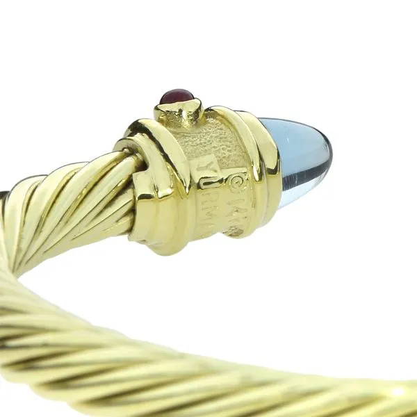 David Yurman Renaissance 14K Yellow Gold Blue Topaz and Ruby 5mm Cable Cuff Image 2 Purple Creek Holly Springs, NC