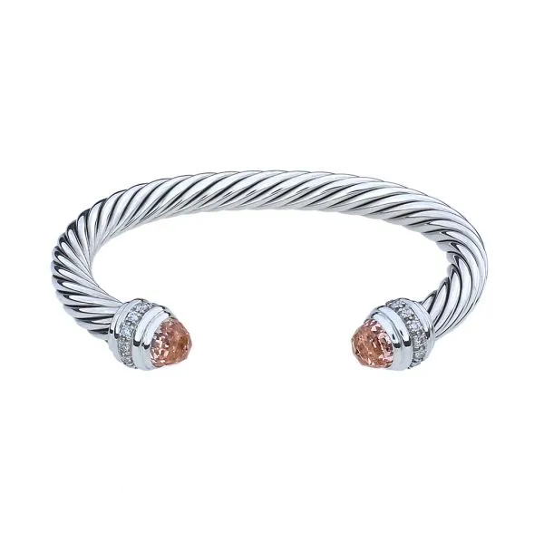 David Yurman Sterling Silver Morganite and Diamond 7mm Cable Classics Cuff Bracelet Image 2 Purple Creek Holly Springs, NC