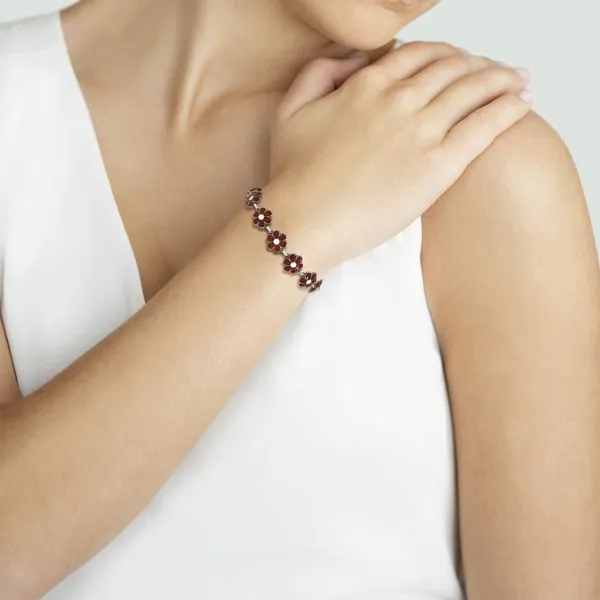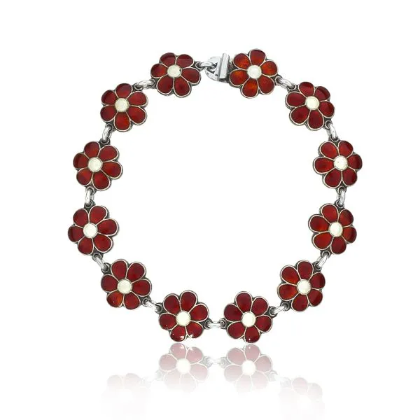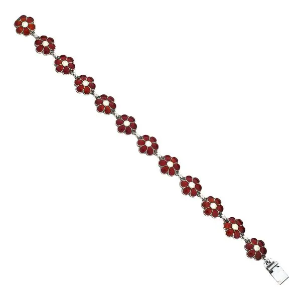 Einar Modahl Vintage Sterling Silver Norwegian Guilloche Enamel 6" Floral Link Bracelet