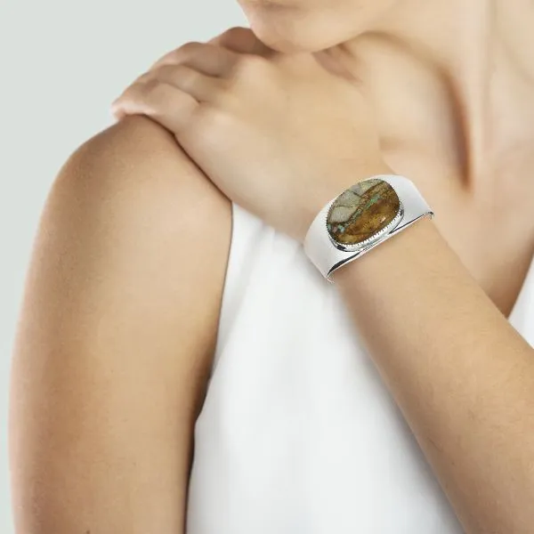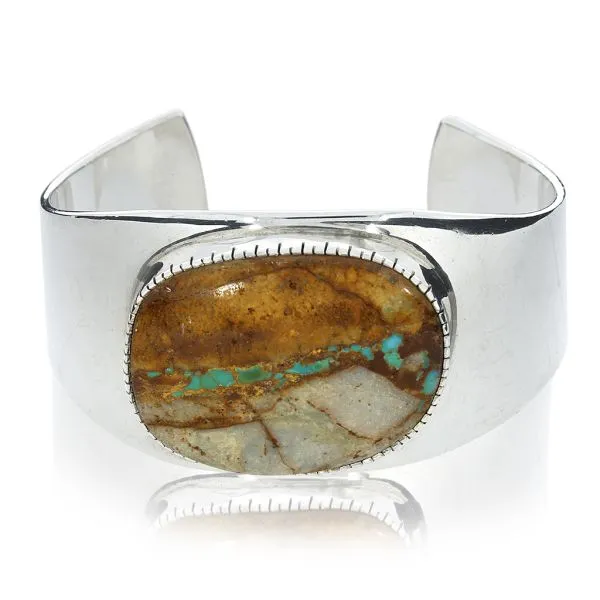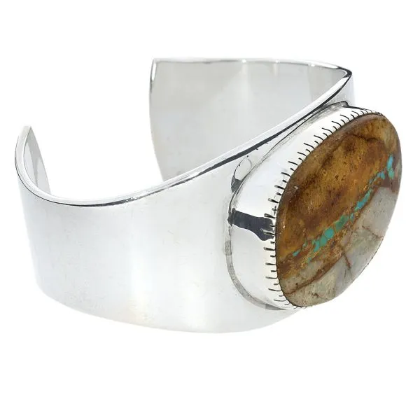 Joe Piaso Jr. Sterling Silver Vintage Navajo Native American Boulder Turquoise Cuff