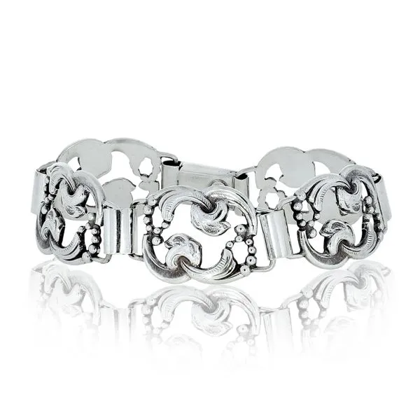 John Lauritzen Vintage Denmark 7 1/2" 800 Silver Open Floral Scrollwork Panel Bracelet Image 2 Purple Creek Holly Springs, NC