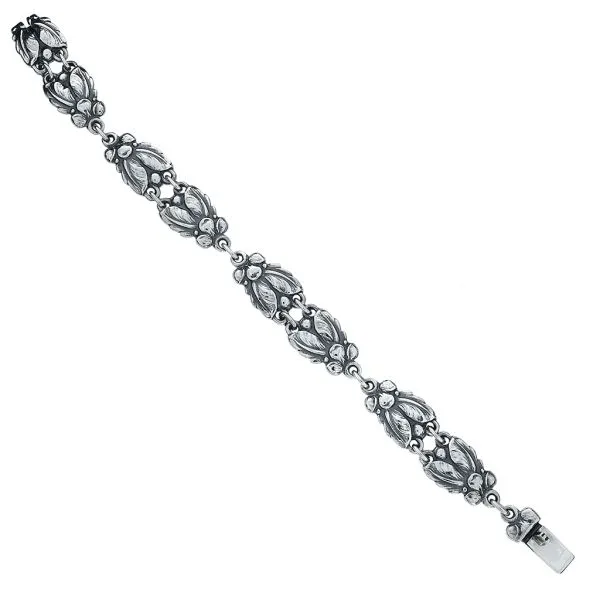 John Lauritzen Vintage Denmark 7 1/2" Sterling Silver Floral Panel Bracelet
