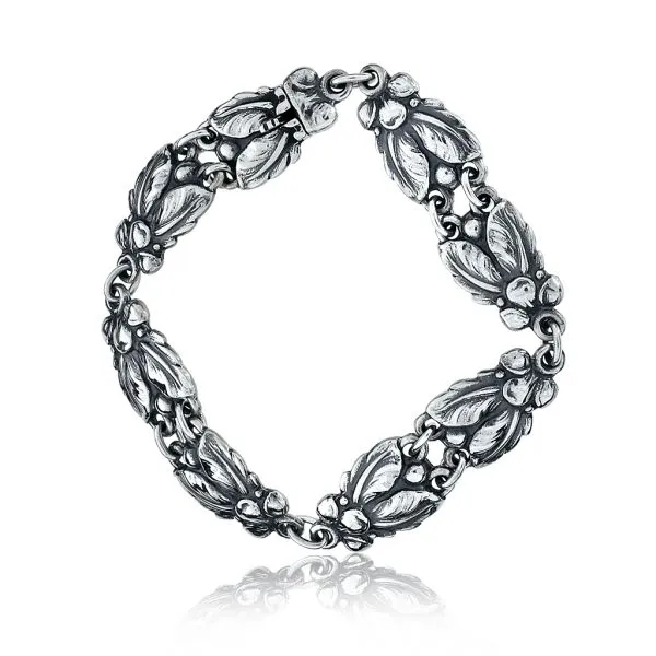 John Lauritzen Vintage Denmark 7 1/2" Sterling Silver Floral Panel Bracelet Image 4 Purple Creek Holly Springs, NC