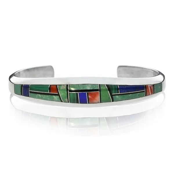 Pete Sanchez Sterling Silver Isleta Pueblo Vintage Native American Turquoise and Gemstone Inlay Cuff Image 2 Purple Creek Holly Springs, NC