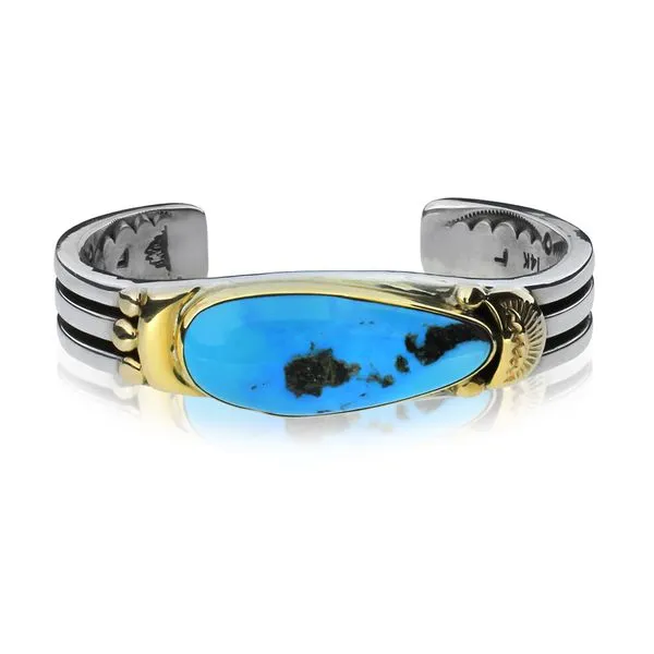 Regan Nahkal 14K Yellow Gold & Sterling with Turquoise Native American Cuff