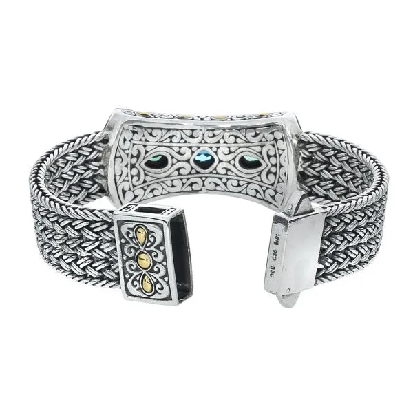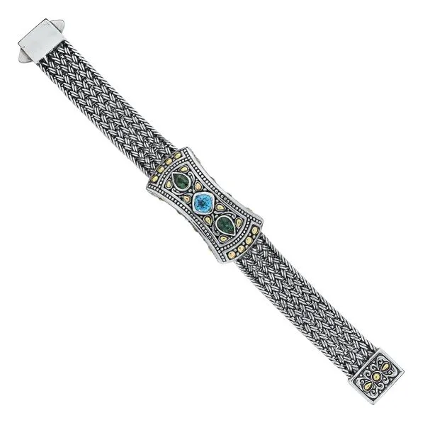 Samuel B 18K Yellow Gold Sterling Silver Woven Multi Color Gemstone Bracelet