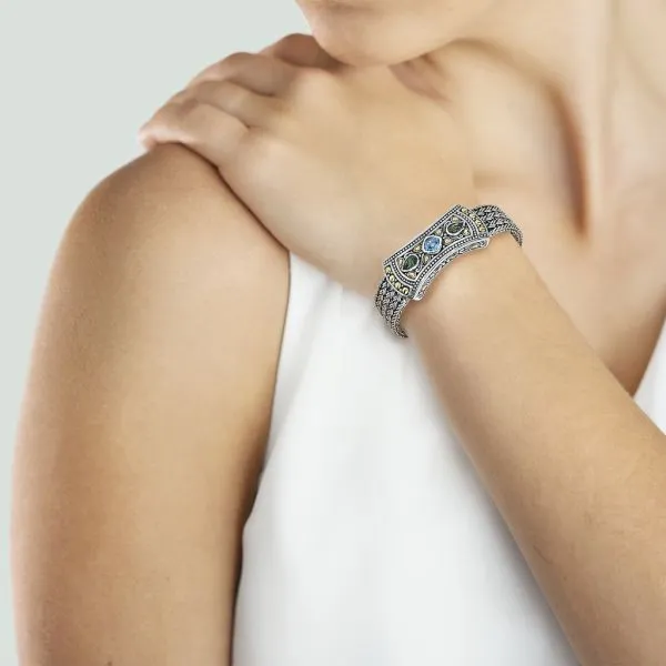 Samuel B 18K Yellow Gold Sterling Silver Woven Multi Color Gemstone Bracelet Image 2 Purple Creek Holly Springs, NC