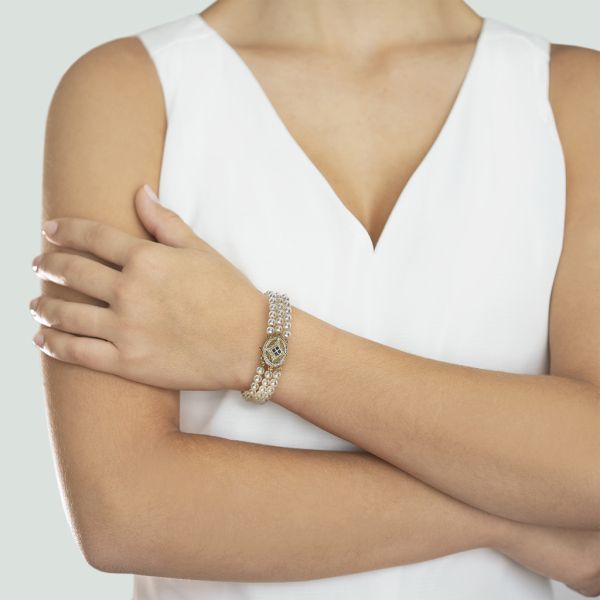 Vintage 14K 3 Strand Pearl Bracelet with Diamond and Blue Sapphire Accents Image 3 Purple Creek Holly Springs, NC