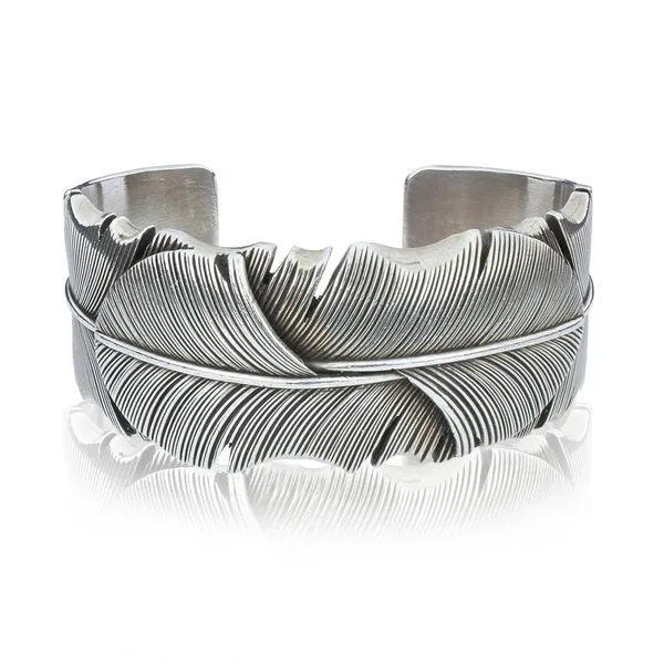 Vintage Native American Sterling Silver Figural Feather Cuff