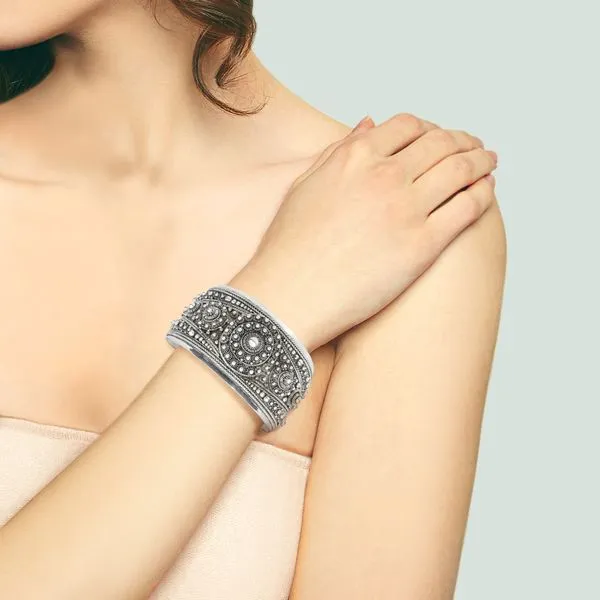 Vintage Siam Sterling Silver Ornate Bead & Domed Cuff