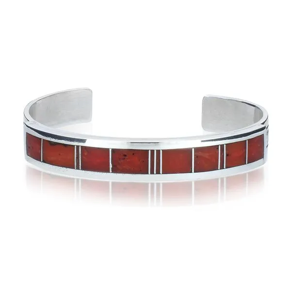 Vintage Signed TT Native American Sterling Silver Coral Inlay Cuff Image 2 Purple Creek Holly Springs, NC