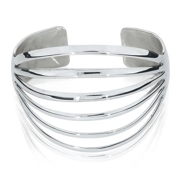 Wilson Begay Native American Sterling Silver Vintage 6 Ribbed Open Cuff