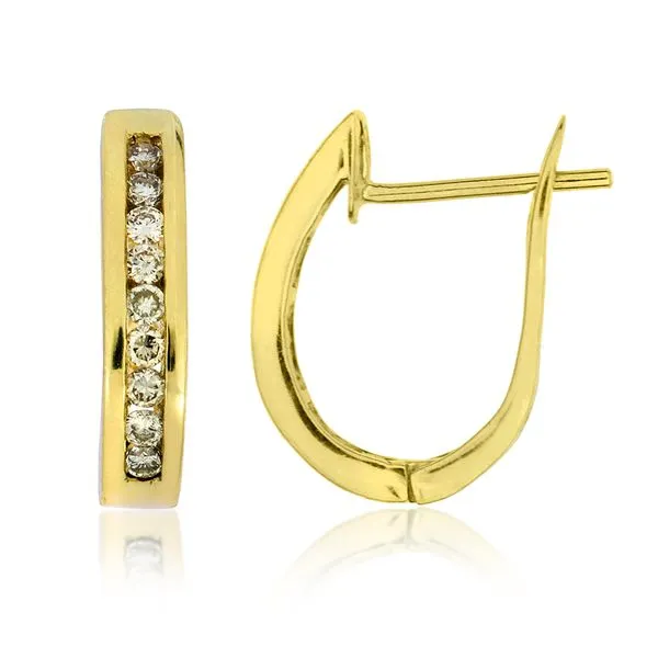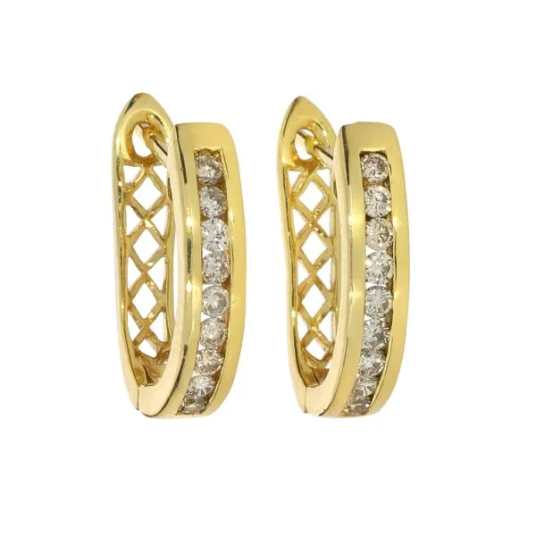 10K Yellow Gold .36ctw Natural Diamond Hinged Oval Hoop Lattice Back Earrings Purple Creek Holly Springs, NC