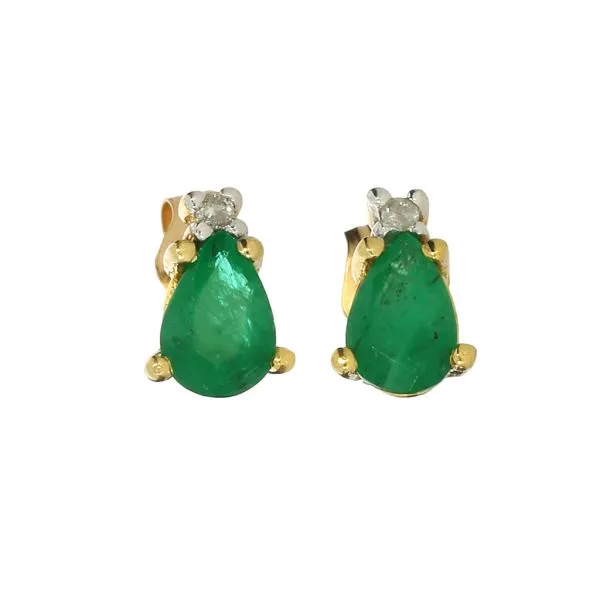 10K Yellow Gold Pear Cut Emerald & Natural Diamond Stud Earrings Image 2 Purple Creek Holly Springs, NC