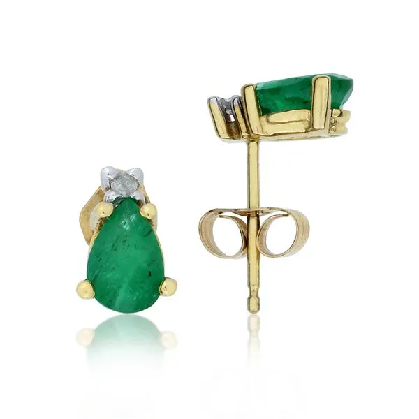 10K Yellow Gold Pear Cut Emerald & Natural Diamond Stud Earrings Purple Creek Holly Springs, NC