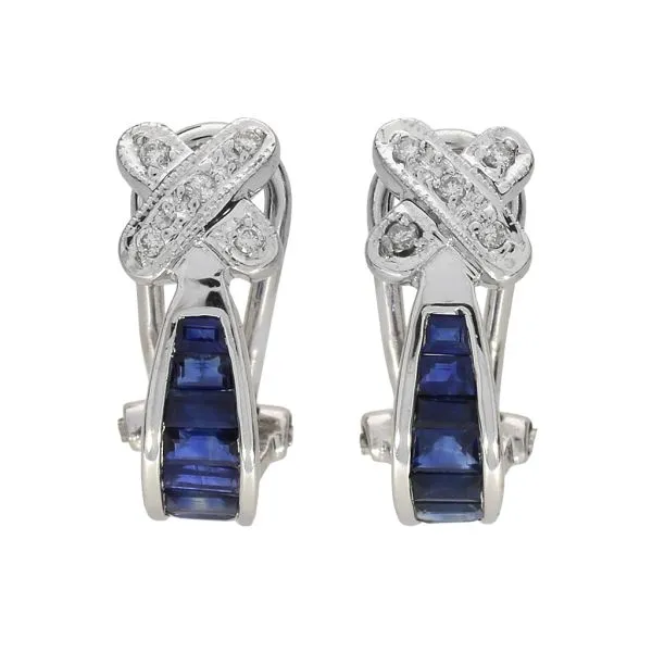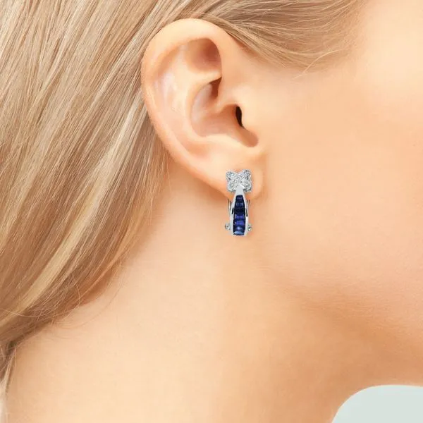 14K White Gold 1.30ctw Sapphire & Natural Diamond J Hook Earrings Image 2 Purple Creek Holly Springs, NC