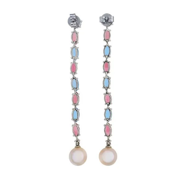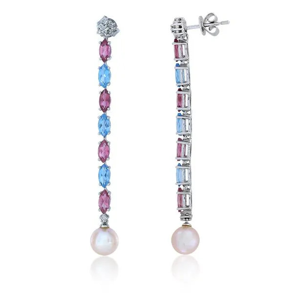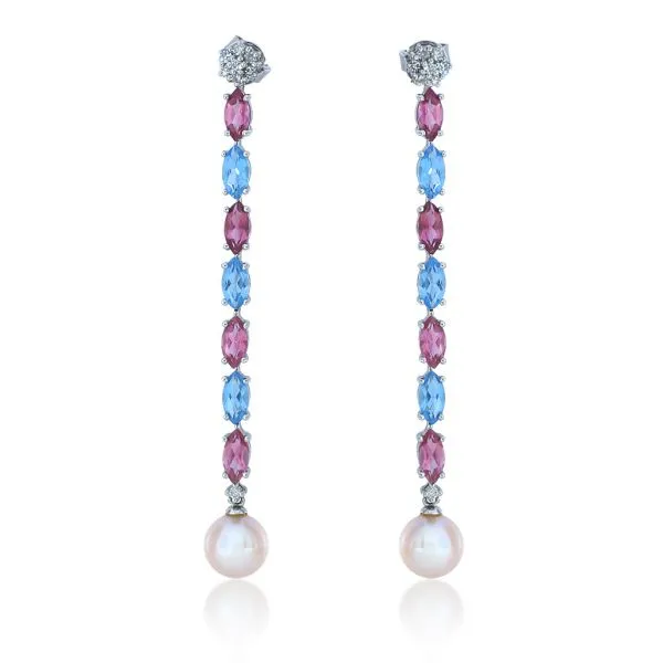 14K White Gold Tourmaline, Topaz, Natural Diamond & Pearl Dangle Earrings Image 2 Purple Creek Holly Springs, NC