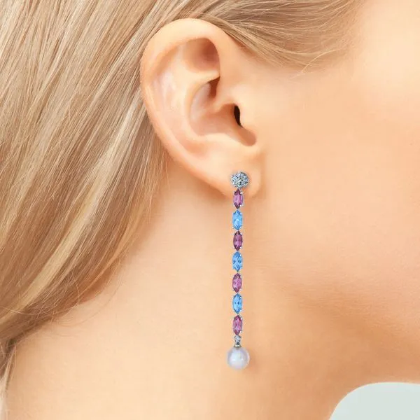 14K White Gold Tourmaline, Topaz, Natural Diamond & Pearl Dangle Earrings Purple Creek Holly Springs, NC