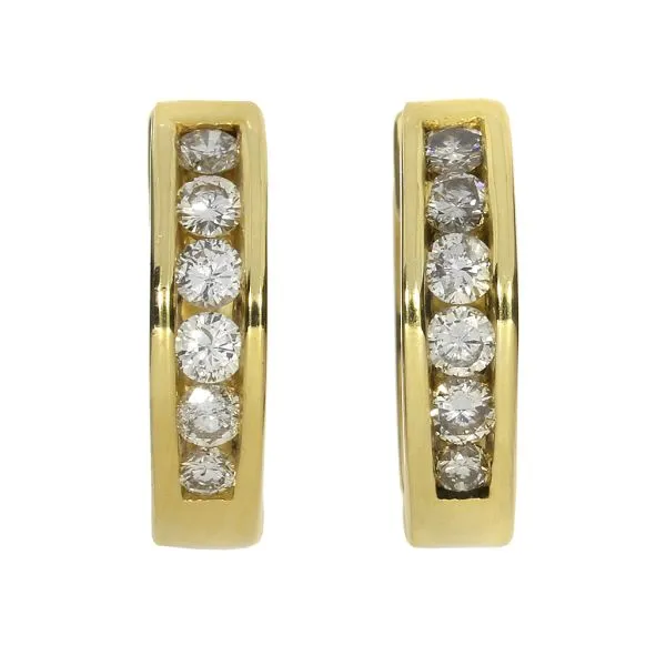 14K Yellow Gold 1.09ctw Natural Diamond Hinged Hoop Earrings Image 2 Purple Creek Holly Springs, NC