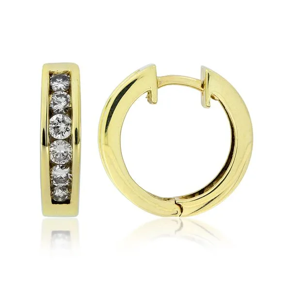14K Yellow Gold 1.09ctw Natural Diamond Hinged Hoop Earrings Image 4 Purple Creek Holly Springs, NC