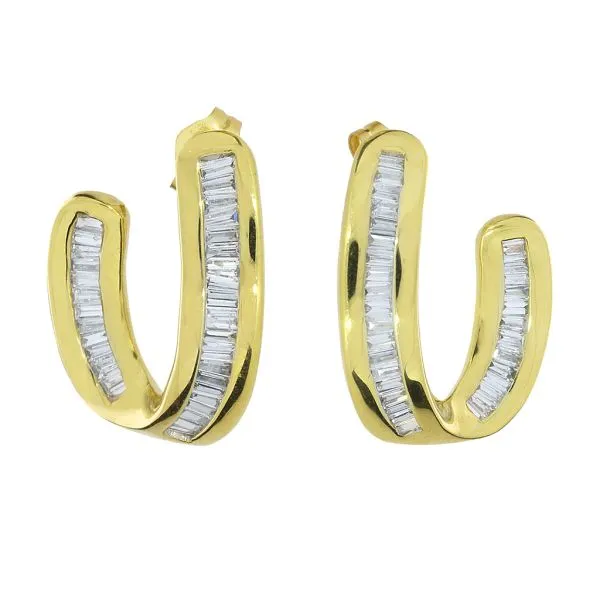 14K Yellow Gold 1.32ctw Natural Diamond J Hoop Earrings Image 3 Purple Creek Holly Springs, NC
