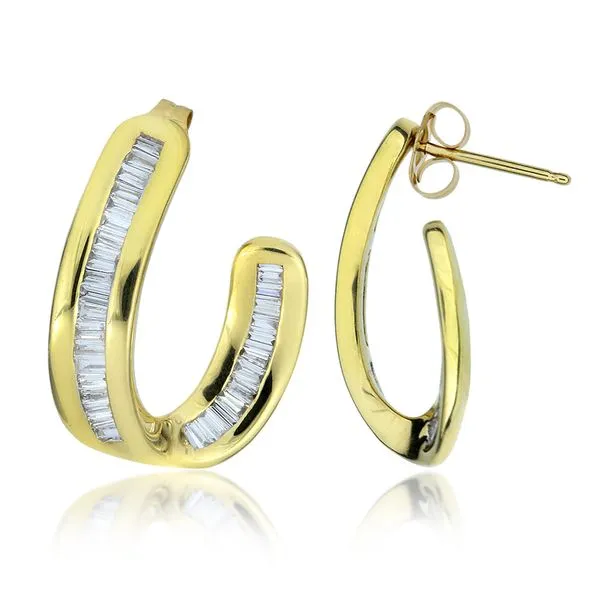 14K Yellow Gold 1.32ctw Natural Diamond J Hoop Earrings Image 2 Purple Creek Holly Springs, NC
