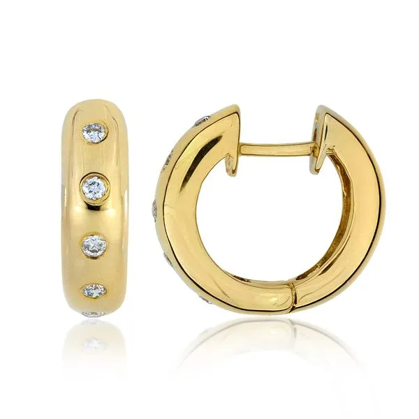 14K Yellow Gold .18ctw Natural Diamond Hoop Flush Set Hinged Earrings Image 4 Purple Creek Holly Springs, NC