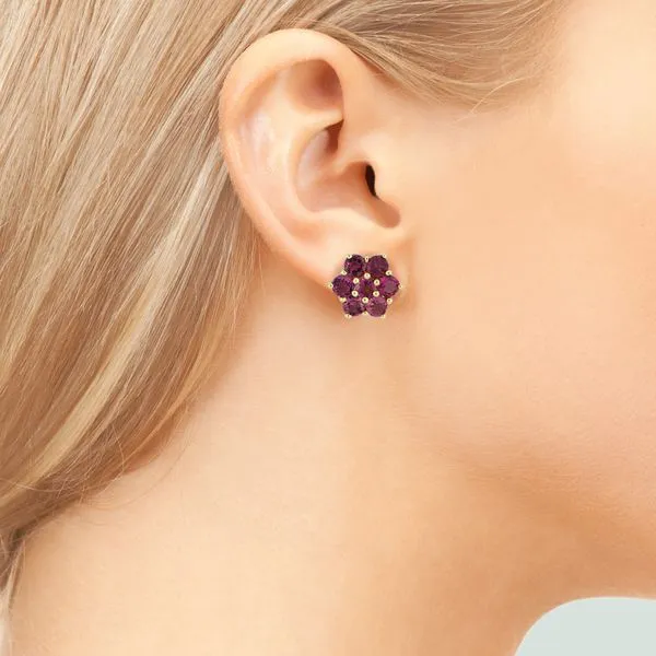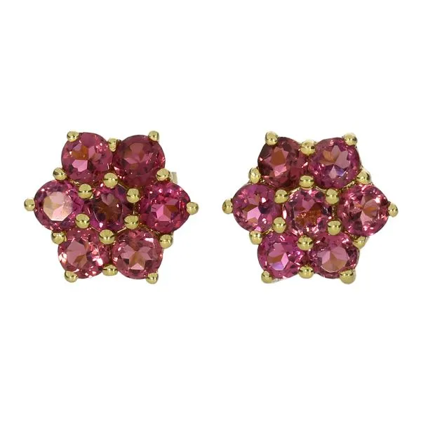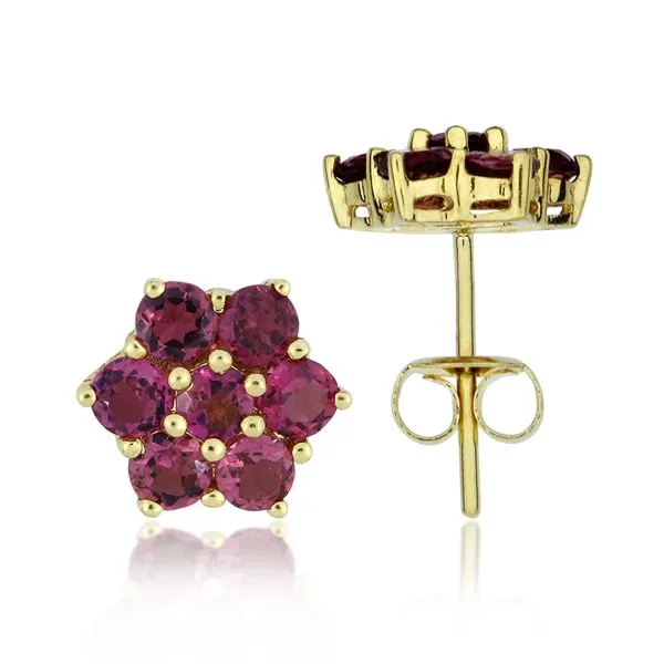 14K Yellow Gold 2.10ctw Rhodolite Garnet Halo Stud Earrings Image 4 Purple Creek Holly Springs, NC