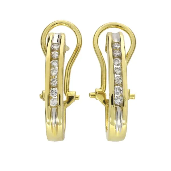 14K Yellow Gold .28ctw Natural Diamond J Hoop Earrings