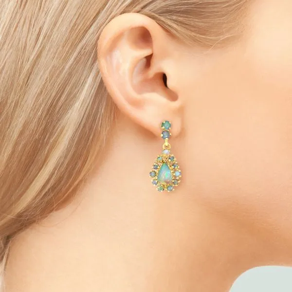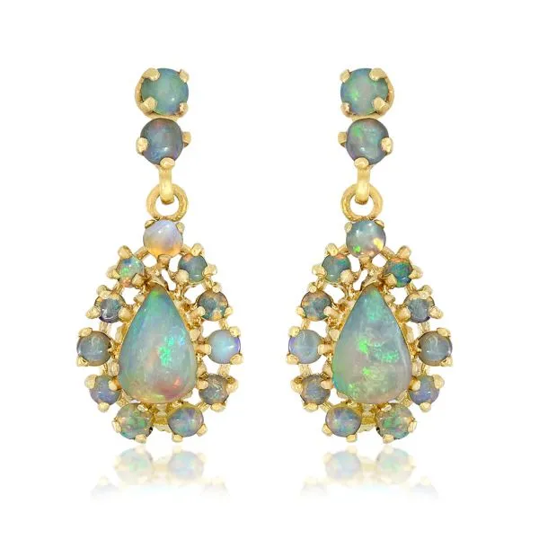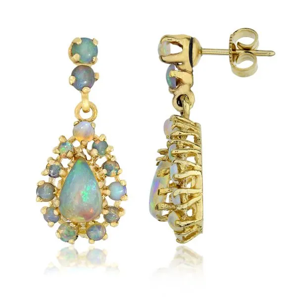 14K Yellow Gold 2.98ctw Australian Opal Teardrop Dangle Earrings Image 2 Purple Creek Holly Springs, NC