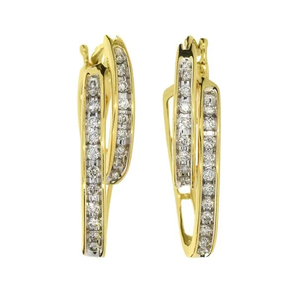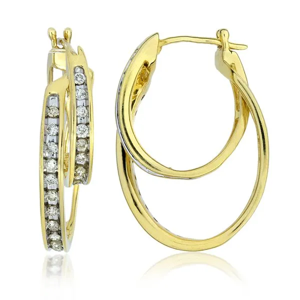 14K Yellow Gold .60ctw Natural Diamond Double Oval Hoop Earrings Image 2 Purple Creek Holly Springs, NC