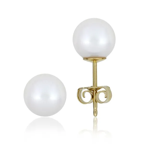 14K Yellow Gold 7.35mm Pearl Stud Earrings