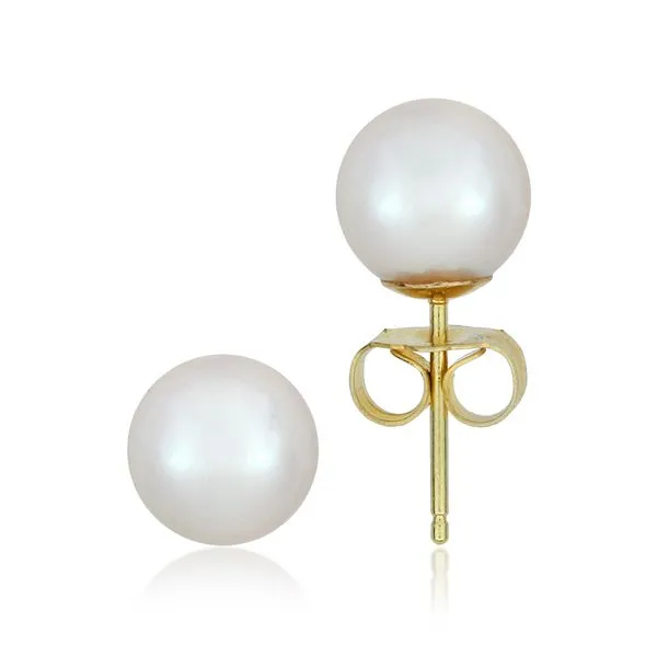 14K Yellow Gold 7mm Pearl Stud Earrings Image 2 Purple Creek Holly Springs, NC