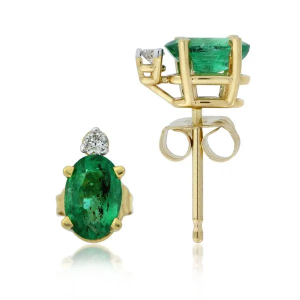 14K Yellow Gold .96ctw Emerald & Natural Diamond Stud Earrings Image 3 Purple Creek Holly Springs, NC