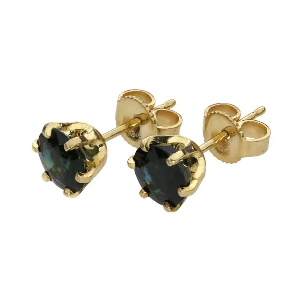 14K Yellow Gold Earth Mined 2.20ctw Blue Sapphire Stud Earrings Image 3 Purple Creek Holly Springs, NC