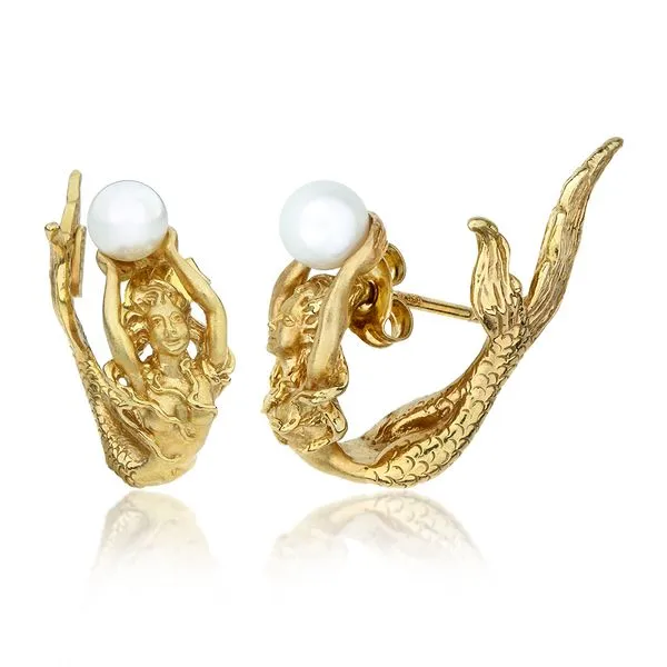 14K Yellow Gold Pearl Figural Mermaid J Hoop Earrings Image 2 Purple Creek Holly Springs, NC