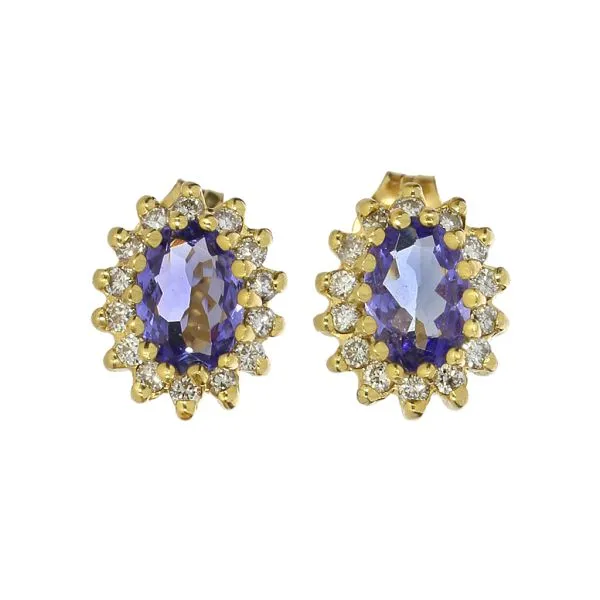 14K Yellow Gold Tanzanite & Natural Diamond Halo Stud Earrings Image 2 Purple Creek Holly Springs, NC