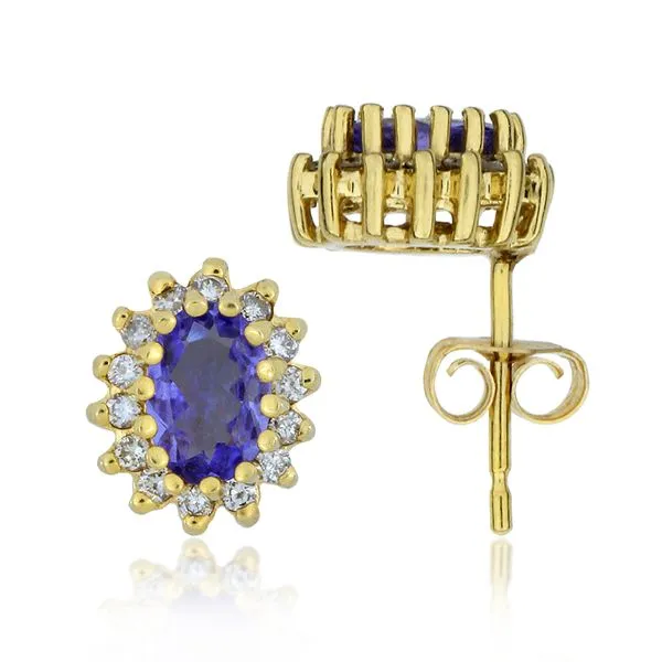 14K Yellow Gold Tanzanite & Natural Diamond Halo Stud Earrings Image 4 Purple Creek Holly Springs, NC