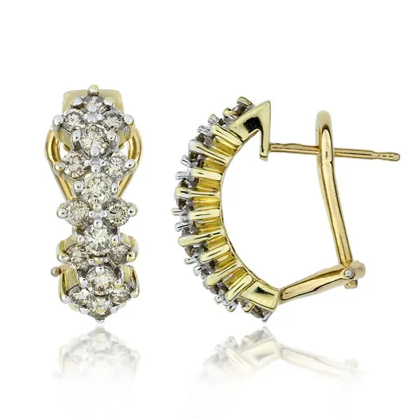 14K Yellow & White Gold 1.64ctw Natural Diamond J Hoop Earrings Image 2 Purple Creek Holly Springs, NC