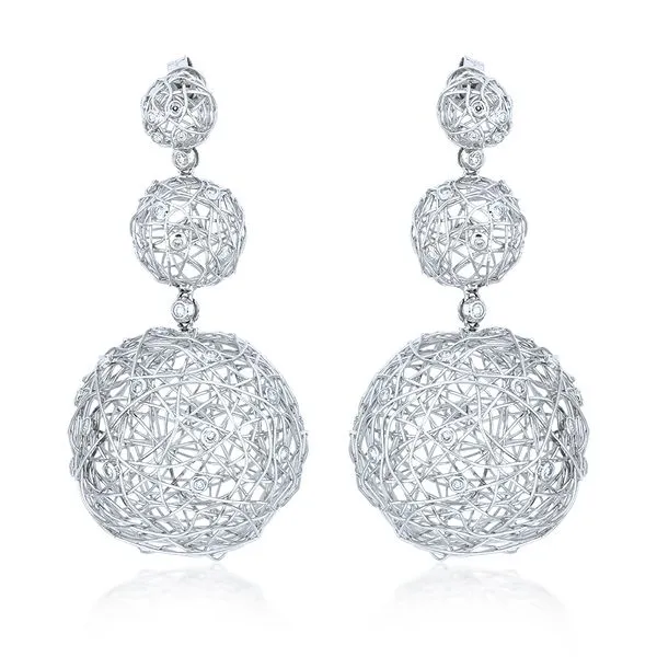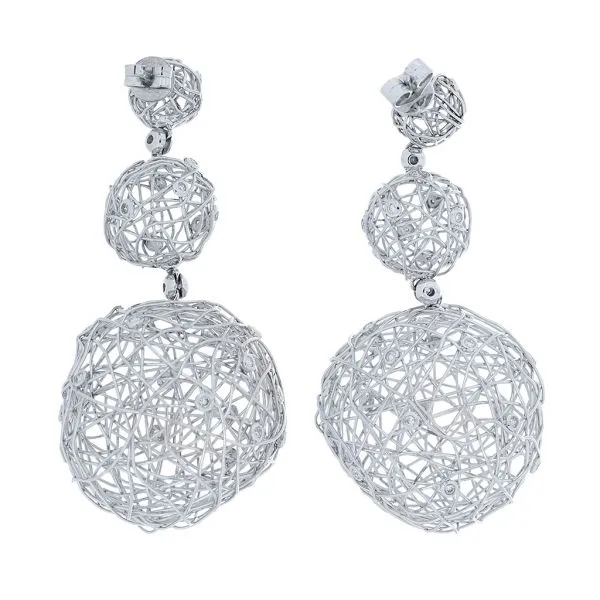 18K Yellow Gold .68ctw Natural Diamonds 3 Woven Spheres Dangle Earrings Purple Creek Holly Springs, NC