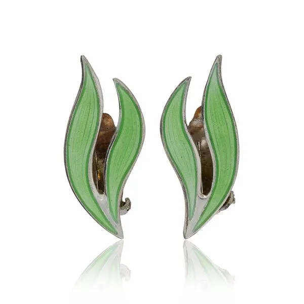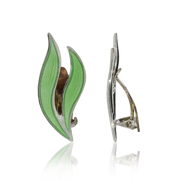 Aksel Holmsen Norway Vintage Green Guilloche Enamel Sterling Silver Earrings