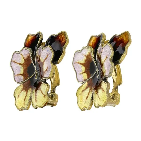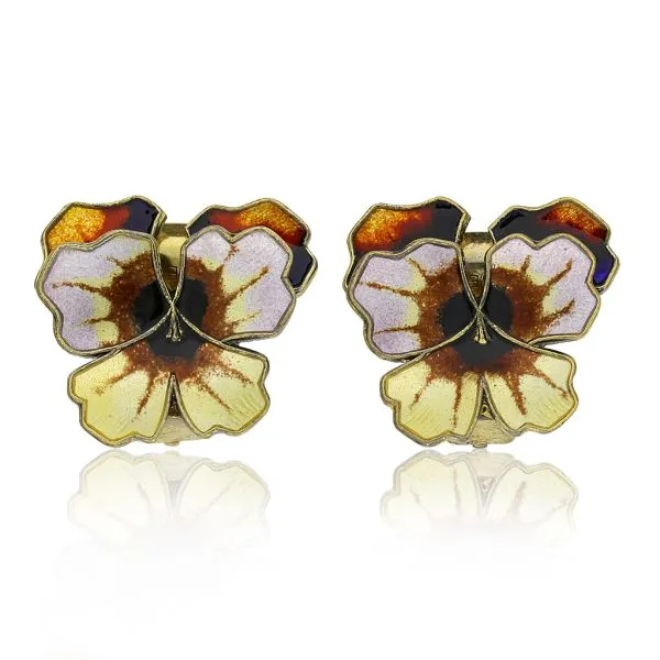 David Andersen of Norway Vintage Enamel Pansy Flower in Sterling Silver with Gold Wash Earrings Image 2 Purple Creek Holly Springs, NC