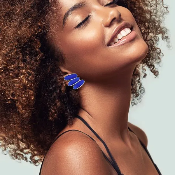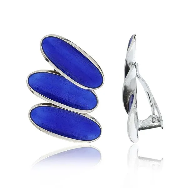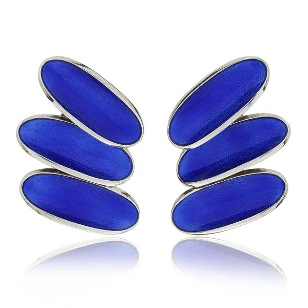 Einar Modahl Vintage Norway Concave Blue Enamel Oval Earrings