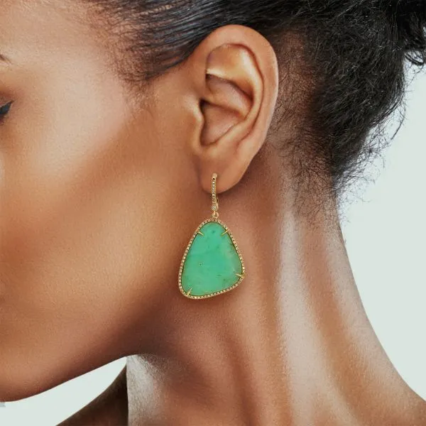 Getana 14K Yellow Gold Chrysocolla Chalcedony and Diamond Halo Earrings
